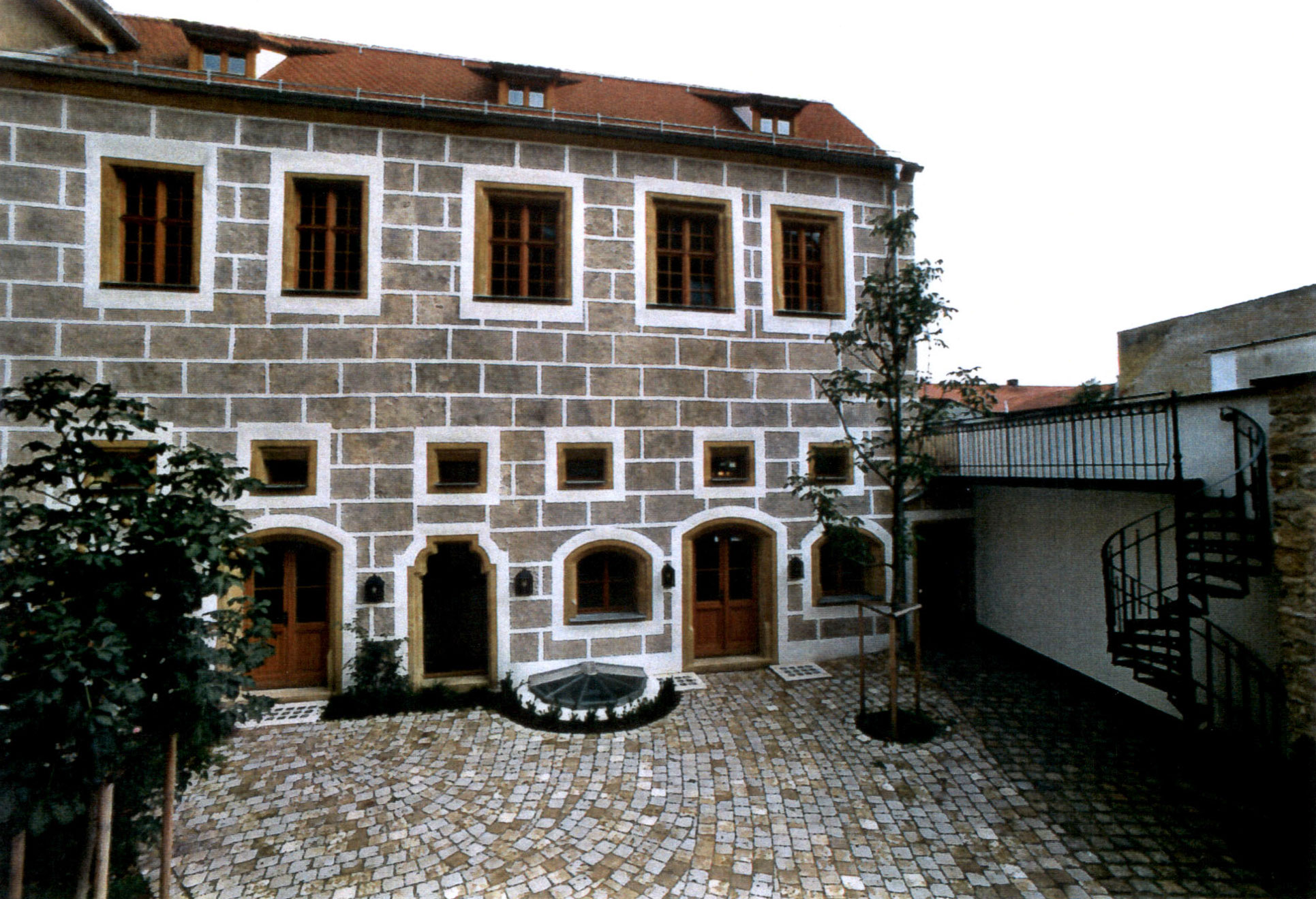Blick vom Vordergebäude in den Innenhof